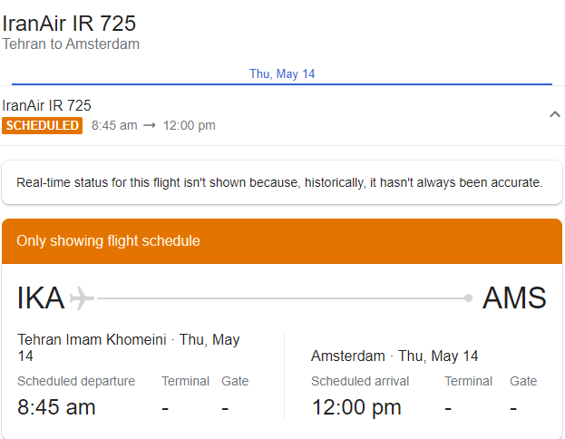 Iran Air bu seferi yeniden başlatmak için , Hollanda Hava Yolları ile gereken müzakere ve takibi yaparak uçuş iznini aldı ve bundan sonra sağlık protokollerini uygulayarak tarifeli seferlerine devam edecek.