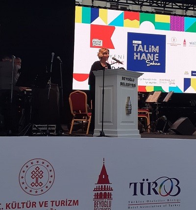 TÜROB Başkanı Müberra Eresin ise Kültür ve Turizm Bakanlığı’na destekleri için teşekkür ederek, “Biz Talimhane’ye sonuna kadar inananlardanız. Bu bir başlangıç olacak. Çok uzun yıllardır bugüne şahitlik etmeyi bekliyorduk” dedi. Talimhane’nin İstanbul’un parlayan yıldızı olduğunu söyleyen Eresin, İstanbul’a gelen turistlerin büyük bir bölümünün ilk tanıştıkları yerin ağırlıklı olarak Talimhane olduğunu söyledi. Eresin, “2-3 yıl öncesinde turizmde yaşanan sıkıntılı günlerde en çok etkilenen bölge Talimhane olmuştu. 2019 yılından itibaren en hızlı toparlanan ve yükselişe geçen bölge yine Talimhane oldu. Pandemiyle birlikte tüm turizm sektöründe olduğu gibi Talimhane otelleri de sıkıntılı bir dönem yaşıyor. Bu günler de geride kalacak ve Talimhane 10 bini aşan yatak kapasitesiyle yine binlerce turistin konaklamasını ve ağırlanmasını sağlayacak. Talimhane İstanbul’un en önemli turizm bölgelerinden biri olma niteliğini sürdürecek” dedi.